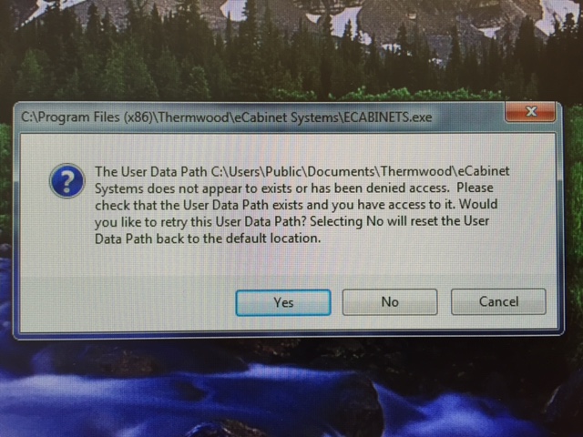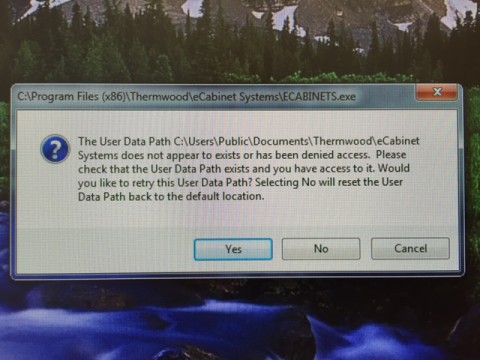 Does the path, C:\Users\Public\Documents\Thermwood\eCabinet Systems actually exist on your computer? Are there any files in the eCabinets Systems folder?