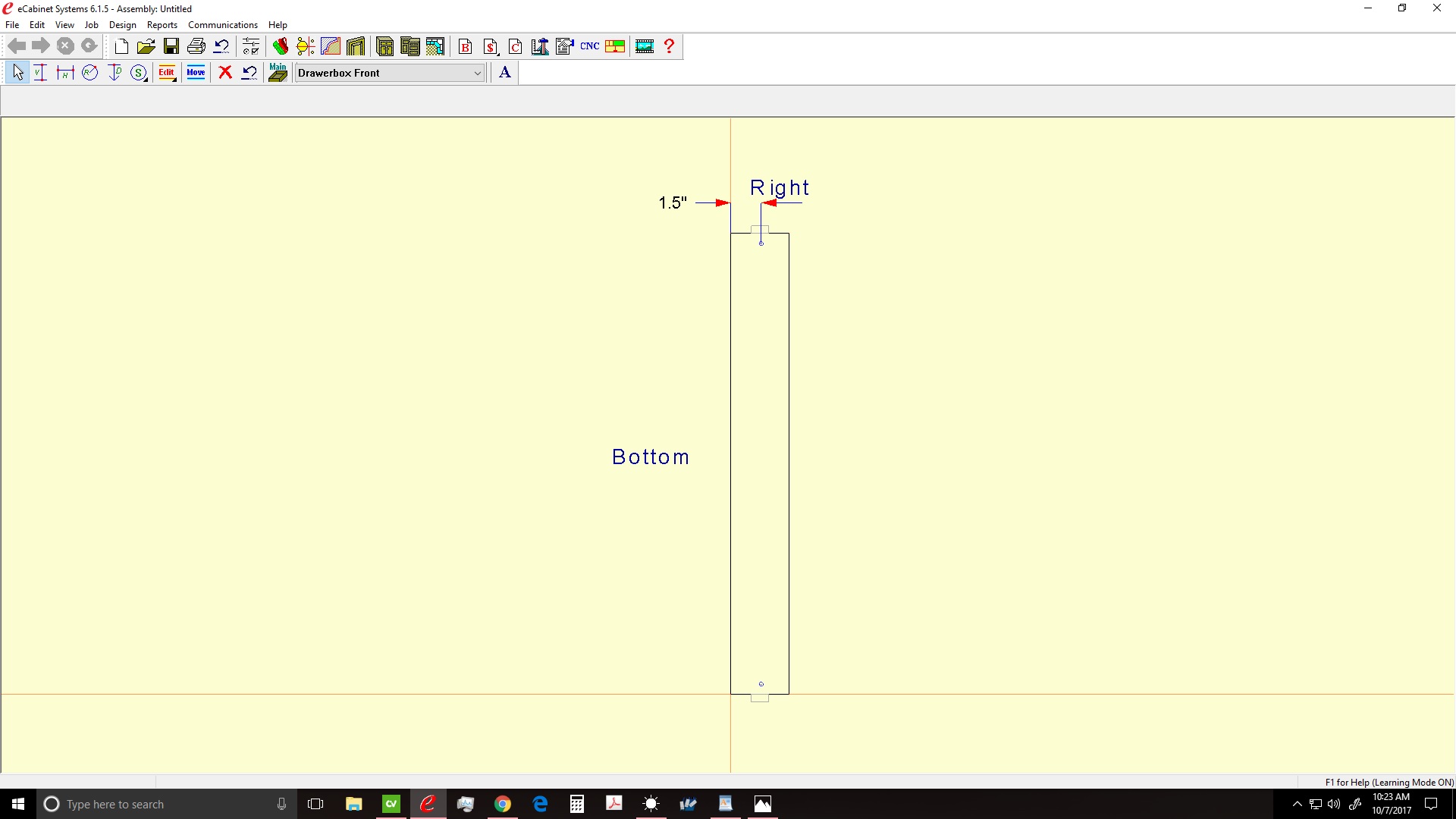 I'm trying to create a pilot hole in the front of my drawer box for attaching drawer fronts. I've got a 5mm hole that is placed 1/2 an inch from the left(and right) of the edge of the drawer box, I'm trying to develop a constraint that will drill the hole in the horizontal center so no matter the height of my drawer box the hole will be in the center. When i try to add formula h/2 it simply deletes my hole.