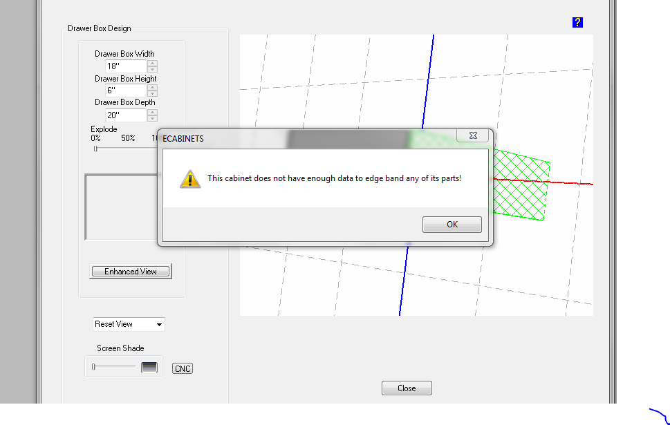 I have attached an error that pops up when I'm trying to apply edge tape to a dbx in drawer box designer. I have never encountered this in designing dbxs