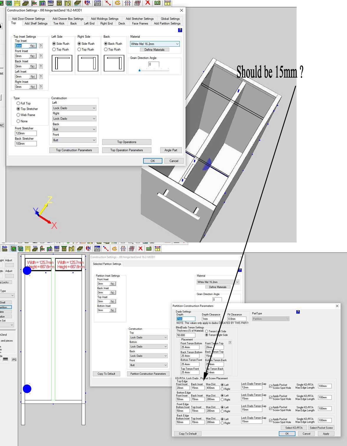 I'm trying to add tenons to the top of a partition. I have a split top for the cabinet (top front is 4" wide, top back is 4" wide). I notice that a tenon is only added at the front of the partition and not the back. I've got my construction parameters set up for .375" deep tenons, .007" width tolerance and .03" depth tolerance.