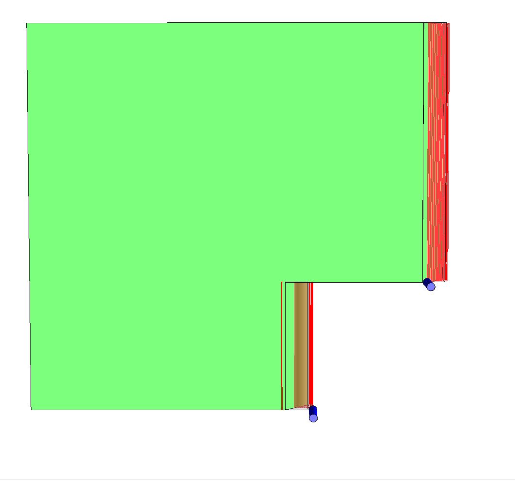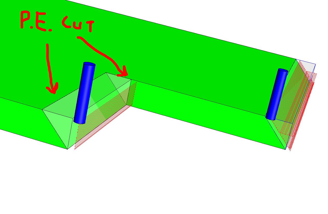 We're making progress. It is the eCabs-generated toekick notch that is part of the problem. We got rid of that, and replaced it with a part editor cut, and the toolpath was correct. We then added back the cut on the front edge of the part, and now suddenly the part-editor-cut toekick notch is not doing right. It decided not to follow the angle of the miter. Here's a picture showing it:
