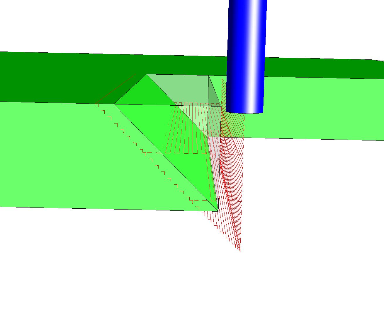 My cut on the toe was shallow about 1/8" and it cut into the top of the part the same amount which is half the diameter of the tool I used.
