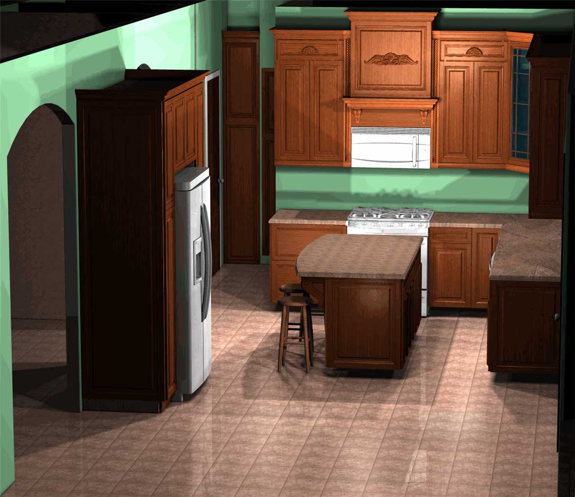Here is the next kitchen I'm going to build. The renderings are not quite finished, but you can get the idea.