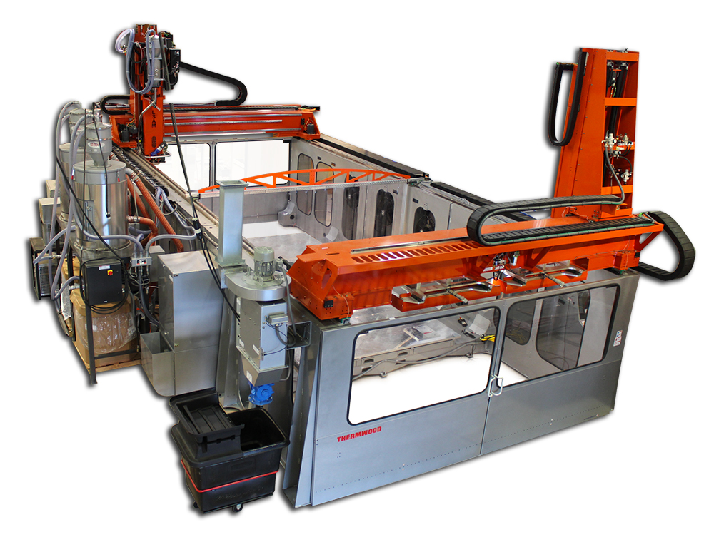 Heavy-duty, high-speed trimming and pattern machining, available in single or dual moving aluminum tables